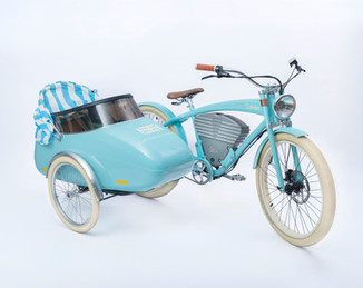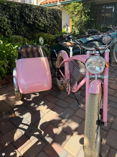 A soft breeze ruffled the leaves overhead, scattering shadows across the sidewalk like fleeting brushstrokes. Beneath them, a row of pastel sidecars gleamed in intermittent sunlight, their lacquered surfaces catching flashes of gold between branches. These particular sidecars, in hues of mint green, aqua blue, blush pink, and a vibrant orange, were part of a limited Mad Dogs & Englishmen collection inspired by vintage Fiat Jolly cars, each color drawn from the original Italian palette. First introduced two summers ago, the collection was born from owner Jennifer Blevins’ admiration for the iconic open-air vehicles seen along the shores of Lake Como. Originally launched in celebration of the Rosewood Miramar in Montecito, where guests are chauffeured in their own fleet of Fiat Jollies, the colors were carefully matched to the hotel’s signature cars. Today, these sidecars remain entirely exclusive to Mad Dogs & Englishmen, with new additions in peach and sage soon to join the collection, further cementing their place as one-of-a-kind design objects in motion.