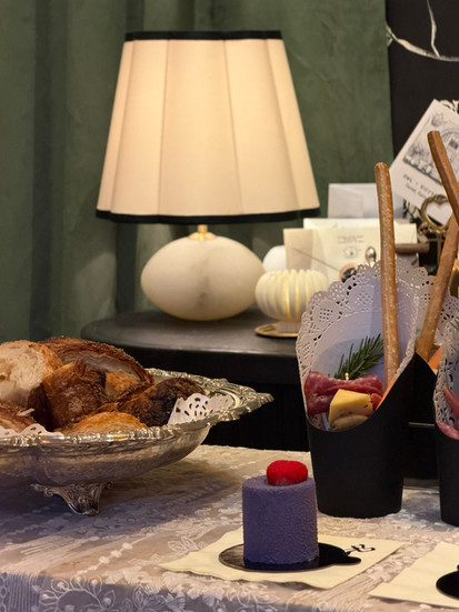 At the center of the room, a table anchored the experience. Candles, elixirs, fragrances arranged with care that suggested ritual without declaring it. A bowl filled with delicate lace bags, each marked with a name in hand-scripted cursive, rested like a quiet act of recognition.