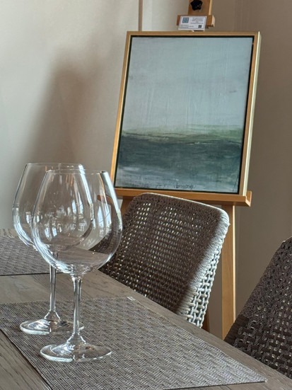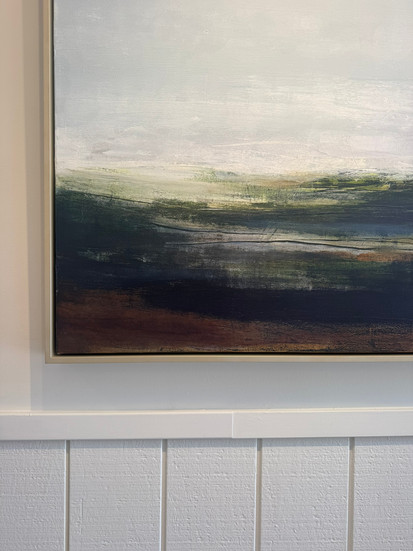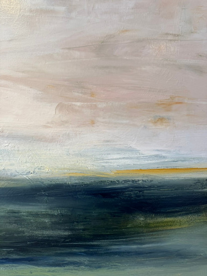 That sense of calm and openness shows up in my work. I’m drawn to creating space within a painting, soft horizons, layered movement, a feeling of breath. The landscape here has taught me to slow down, to notice subtle shifts, and to let things unfold more naturally. I think that’s why my work carries a sense of stillness. It reflects what this beautiful place has given me.